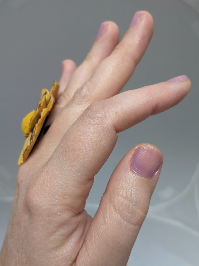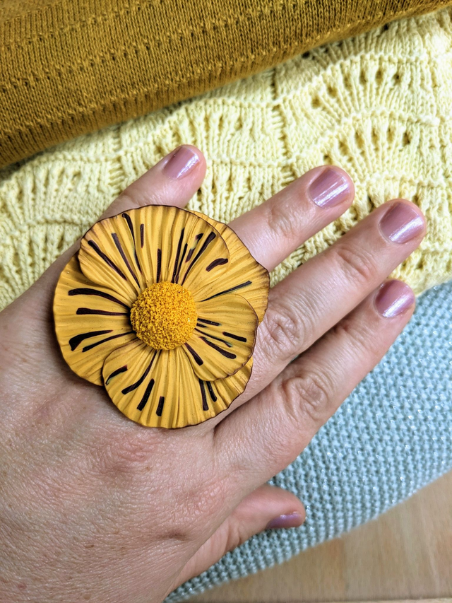 J'aime beaucoup ces teintes de moutarde et de prune et ensemble, elles donnent un aura chaleureux à cette fleur.